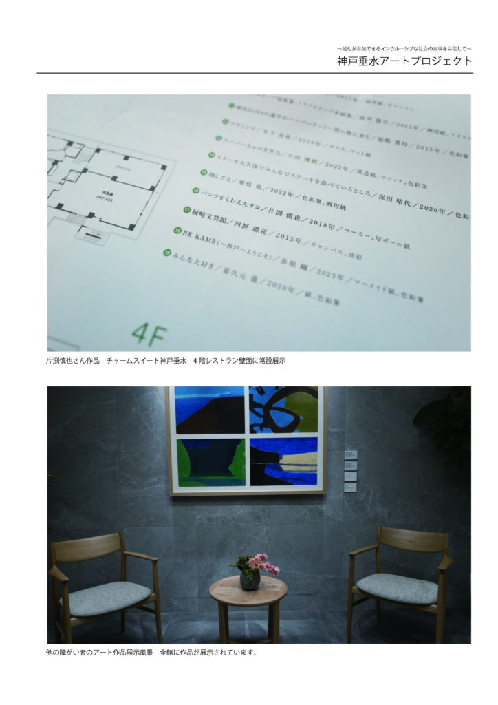 これらの作品すべては「チャームスイート神戸垂水」に飾られ、生活のなかに潤いをもたらし、コミュニケーションを育んでいくきっかけとしてコレクションされます。機会があれば楽しみながらご観覧ください。