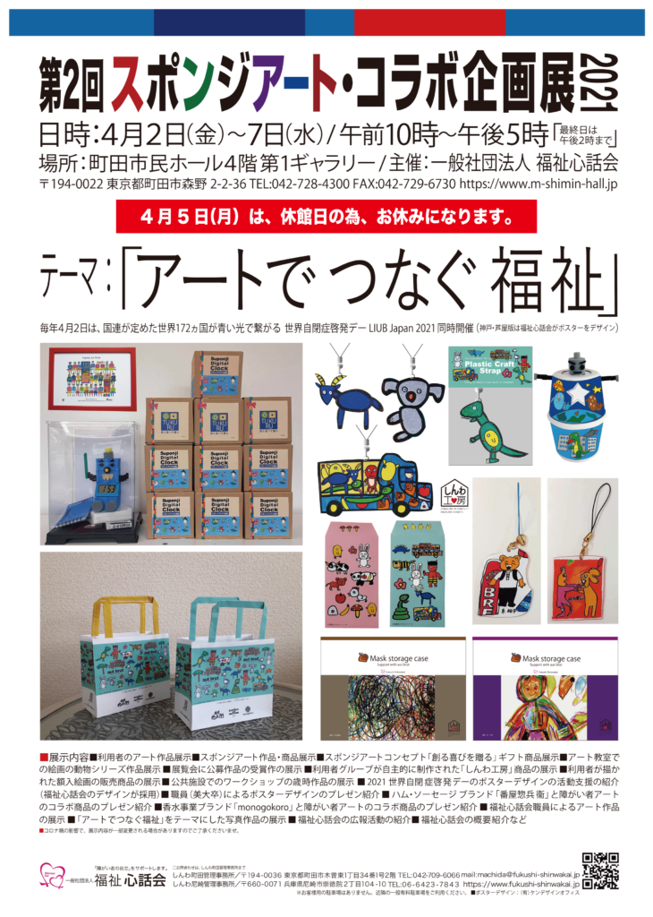 町田市民ホール4階第1ギャラリーで開催しています、「第2回スポンジアート・コラボ企画展」ですが、本日、休館日となります。