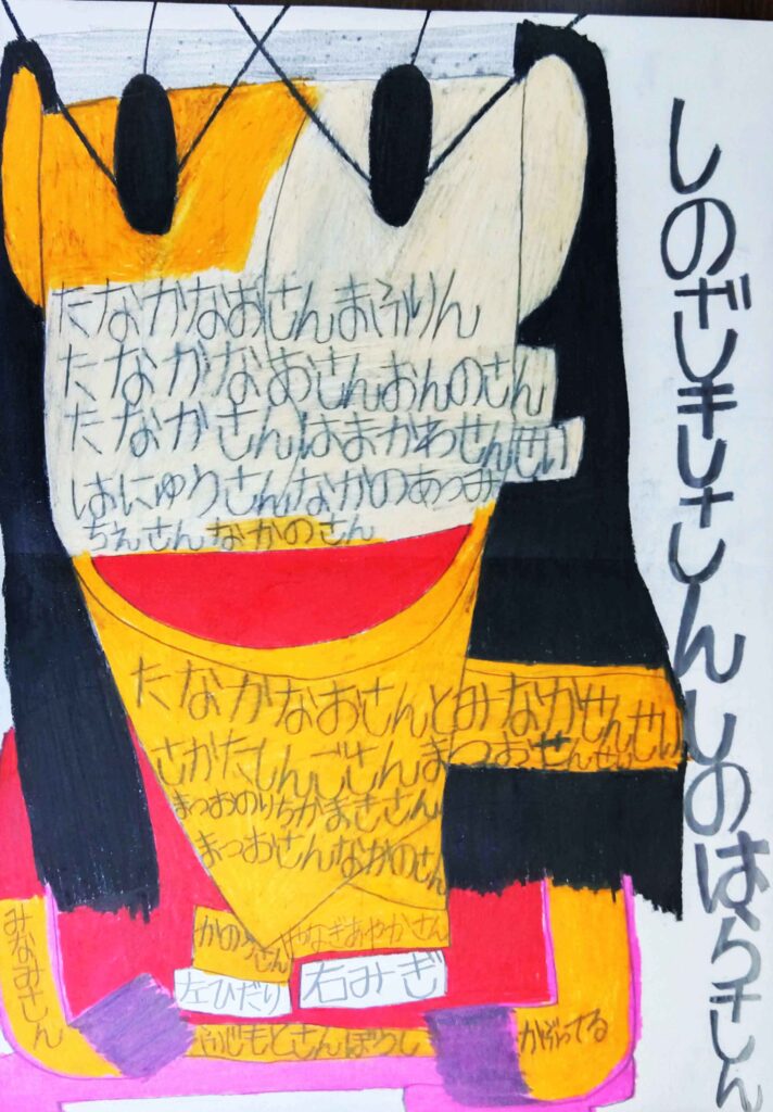 書き込まれたはつらつな文字と言葉が絵と馴染み一体化している作品を、