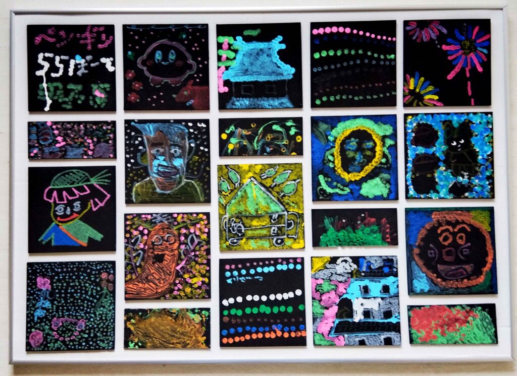 就労継続支援B型で、廃棄されたスポンジ素材をキャンパスにカラーマーカーのポスカで、
