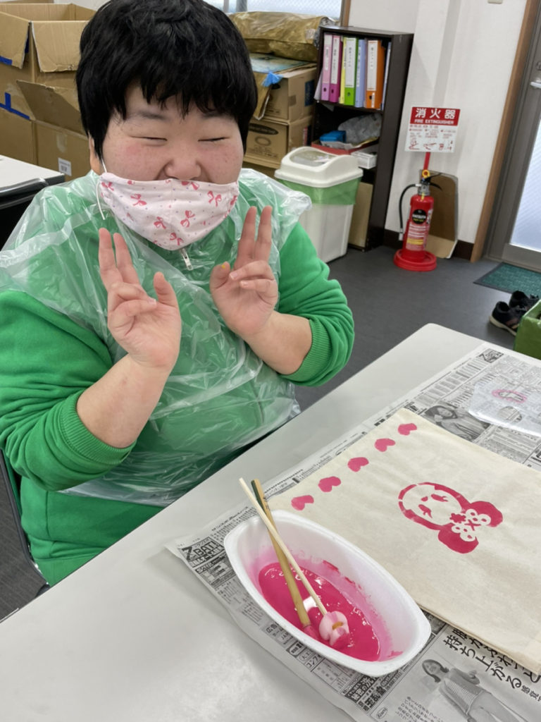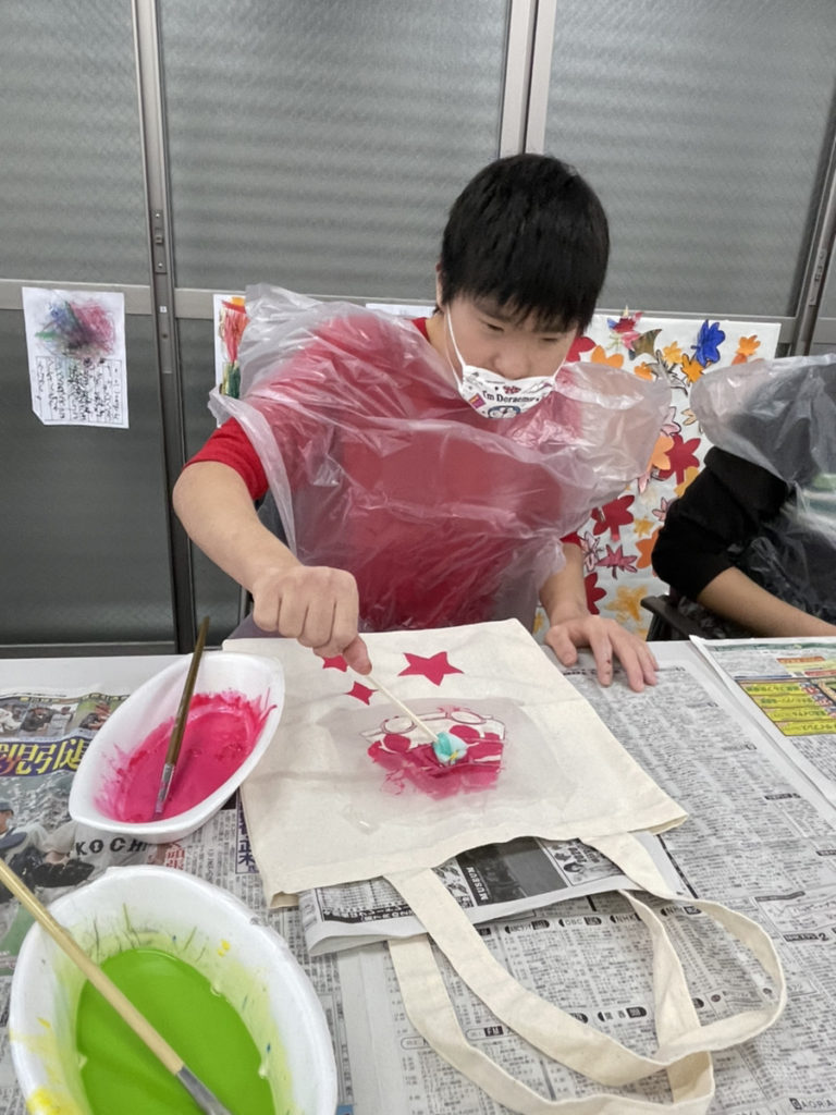 昨日23日に、「トートバッグ作り」と称して、アクリル絵具とステンシルシートを使った活動を行いました。