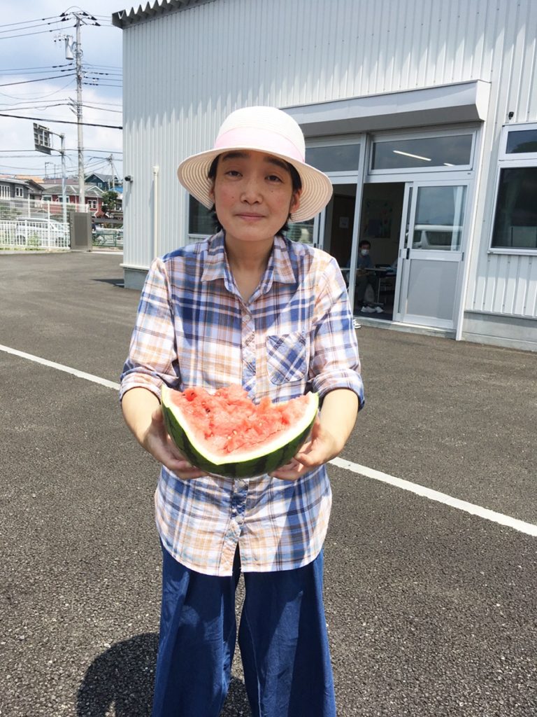 昼前、スイカ割りを行いました。 皆さんがいっぱい楽しまれていたため昼頃にはお腹がぺこぺこな様子でした。 昼食はなんと近くにある横浜家系ラーメン!スイカ割りの甘いスイカもあり、 皆さん満足された顔をしながら召し上がられていました。