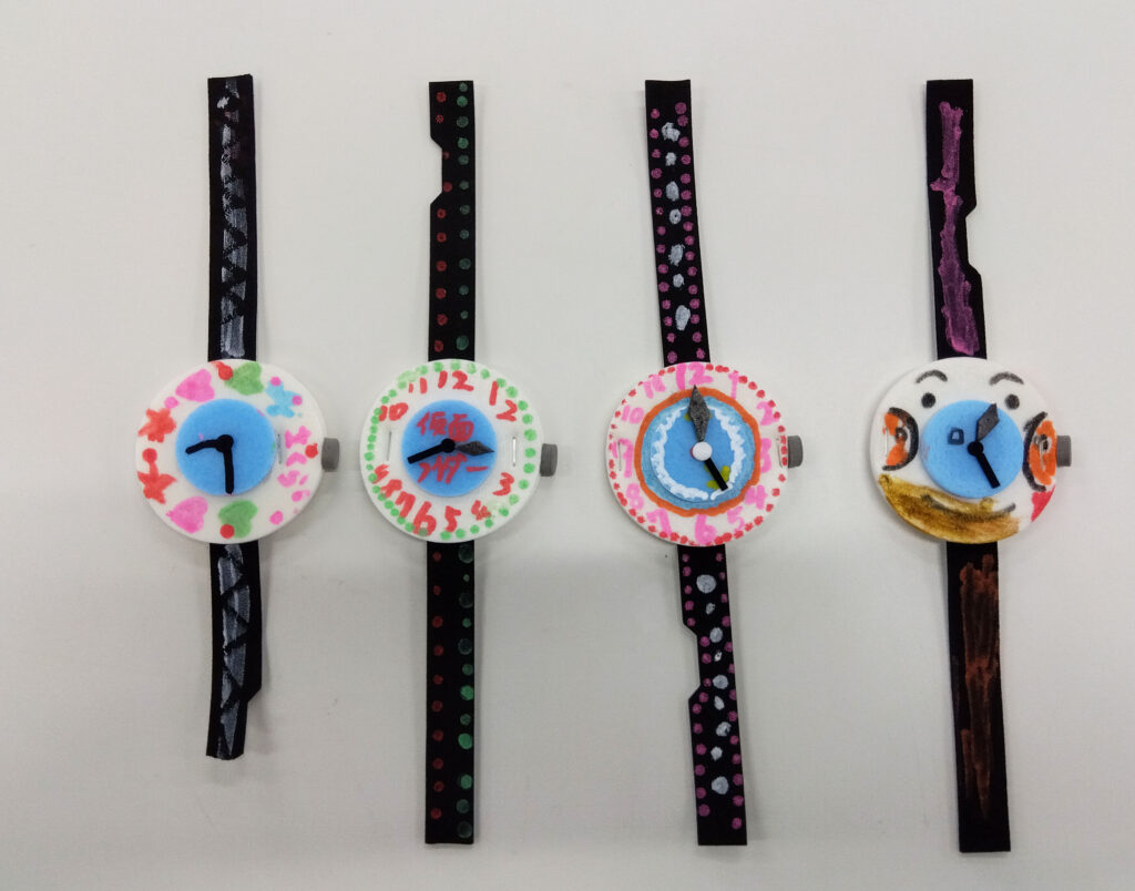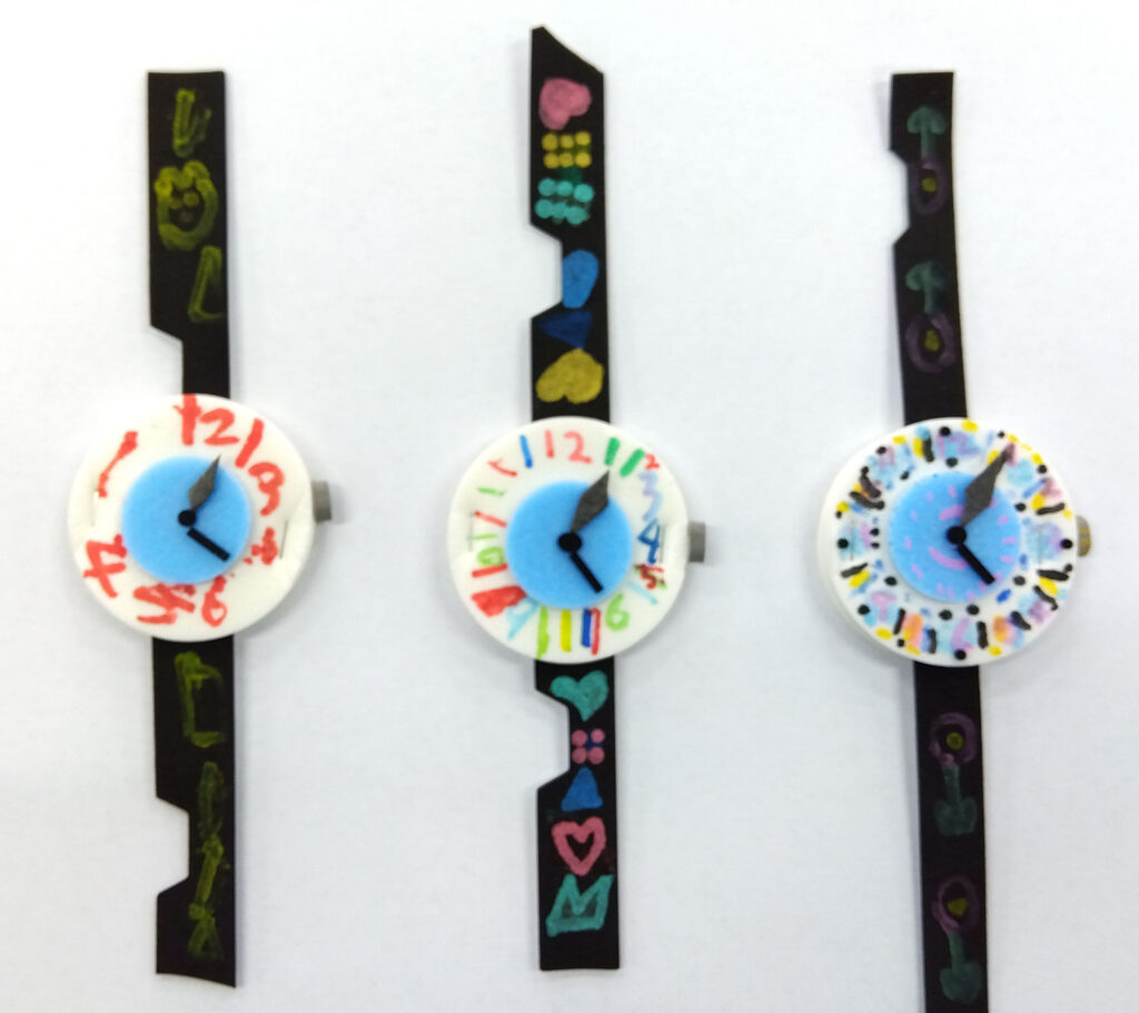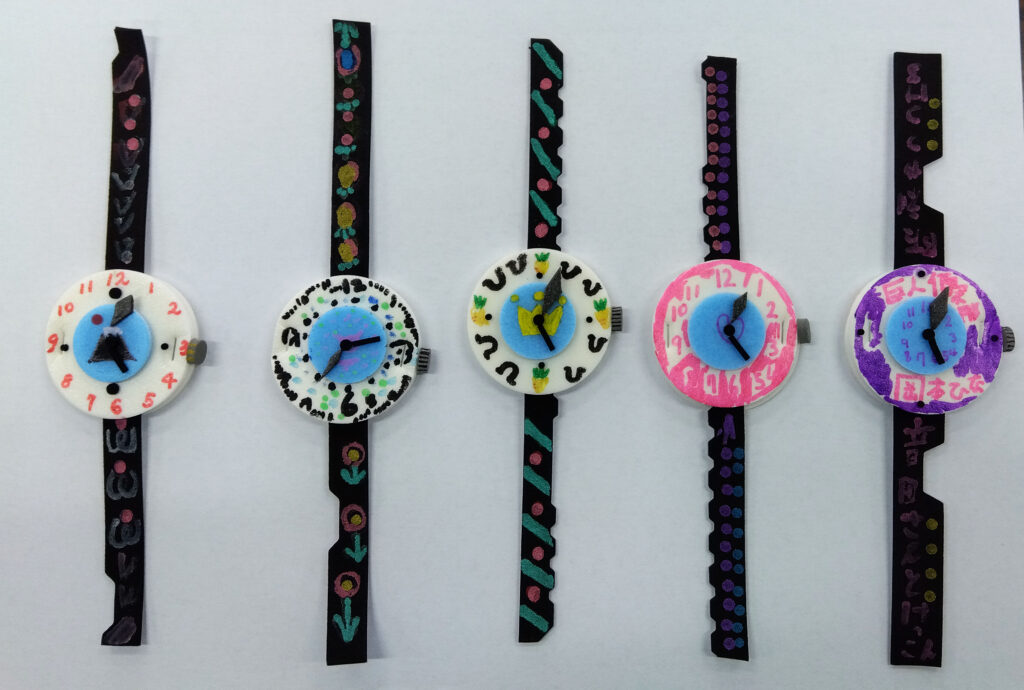 今週、アート教室講座で、スポンジ時計を創ってもらいました。皆さんの想い思いのデザイン画で、素敵な作品ができました。腕にはめて、楽しんでいただきました。