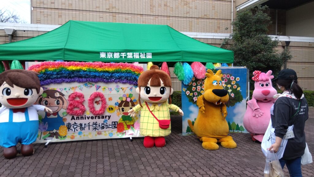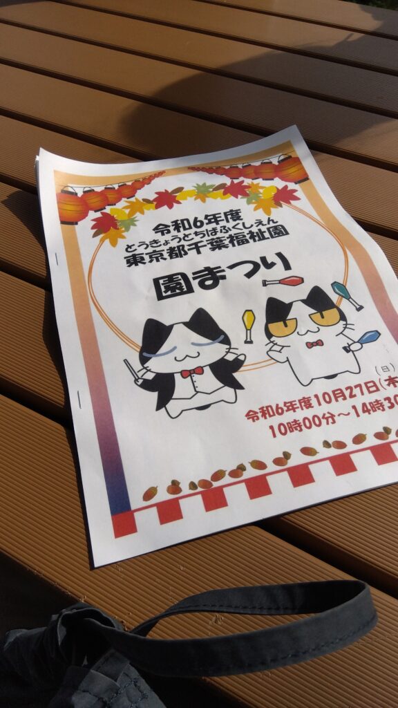 10月27日(日)、「千葉福祉園 園まつり」が開催されました。今回は数年ぶりに外部の方々にも開放され、卒園生と一緒に行ってきました! 午前中はお天気も良く、ご家族や関係者が多く来場されています。気温も高かったため、ジェラート屋さんのキッチンカー「エスキモーカフェ」には行列が出来ていて、ミルクやチョコ、イチゴなど様々な種類があり「イチゴにする?」「チョコが良い?」「んー やっぱりイチゴにする!」と悩んでいる会話も聞こえてきました。 福祉園食養出店の唐揚げ(3個入り)やゴロゴロ野菜とお肉がいっぱい入った具沢山豚汁はとても美味しく食べ応えもあり、更に100円というびっくり価格ですぐに売り切れていました。 出し物もいくつもあり、各寮を回ってジャグリングを披露して下さったり、太鼓演舞や近隣中学の吹奏楽部が素敵な音色を響かせてくれています。 園の非公認(是非公認に!)キャラクター「福太郎」と「福音」もイベント会場まで移動し、子どもたちだけでなくご利用者様とも一緒にギューッとしながら記念撮影! 午後から雨も降ってきてしまいましたが、最後の最後まで楽しめた「千葉福祉園 園まつり」でした。