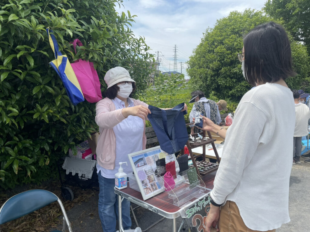 子どもたちが友達同士色違いでブローチを選んだり、お母さんへのプレゼントとエコバッグを購入してくれたりする子どももいました。強風で砂ぼこりが舞うこともありましたが、ゲームやお買い物を通して、小さな子どもからおじいちゃんおばあちゃんまで笑顔になれる1日でした。
