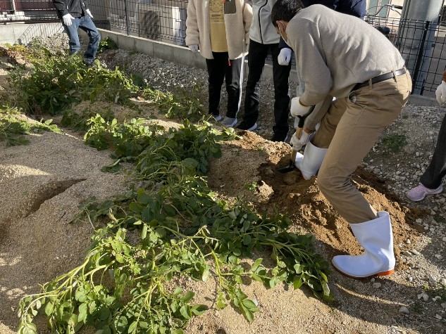 崇徳院生活介護の畑で、昨年9月に植えたじゃがいもが収穫できました。