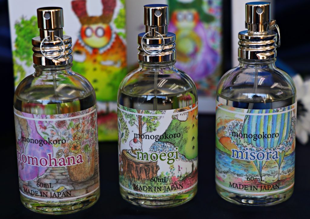 monogokoro”ものごころ”は、福祉心話会から発売された香水です。ももはな・もえぎ・みそらの3種類の香水は爽やかな香りが長く続くオードパルファンです。京都・大阪・神戸の百貨店、ホテル等で販売したくさんのお客様から喜ばれています。
